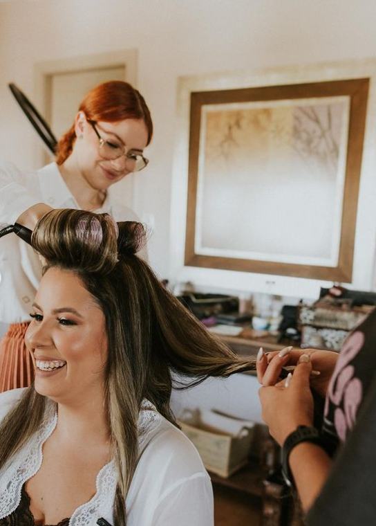 Atender uma noiva vai além de uma maquiagem e um penteado, eu preço por entregar tranquilidade, segurança e confiança. “Costumo dizer que até o dia do casamento eu e a noiva já somos melhores amigas!”… e quem não quer ter uma melhor amiga ao lado nesse grande dia? Essa conexão é o que fará seu dia mais leve e satisfatório. Eu realizo tanto a produção de penteado quanto a de maquiagem, dedicando exclusividade e suporte ao que for necessário até o momento da estreia.