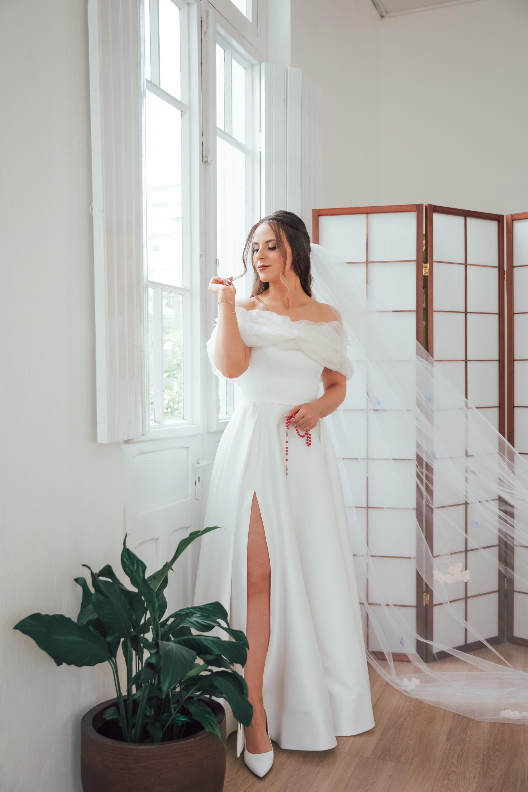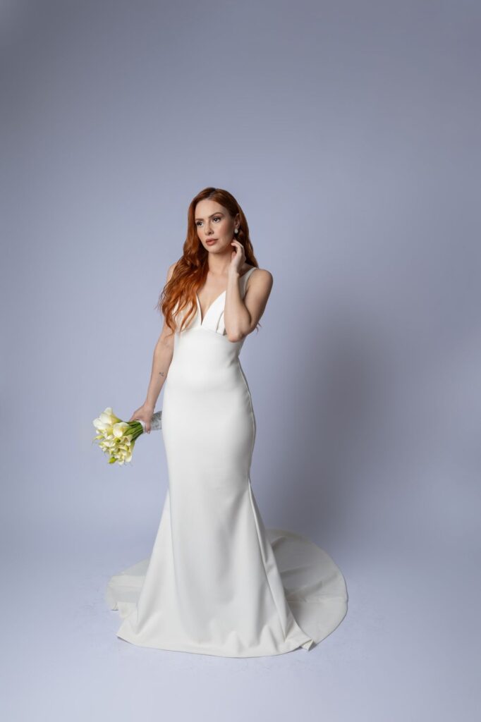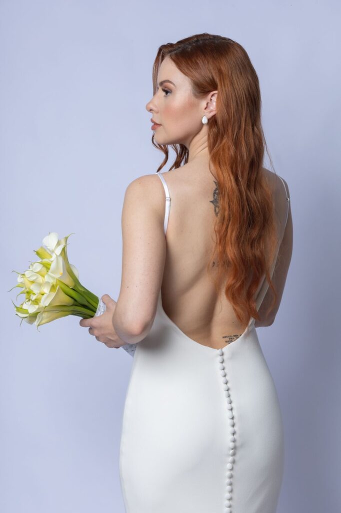 Cada detalhe é pensado para que o vestido reflita a personalidade da noiva, garantindo que o resultado seja tão único quanto ao seu grande dia. Minimalismo, atemporalidade e sofisticação representam os vestidos ao qual eu assino. Para as noivas que buscam fluidez, vestidos mais leves, cortes clássicos e convencionais. Nosso acervo contém alguns modelos cuidadosamente desenvolvidos com base no minimalismo, disponíveis para compra, mas para as noivas que desejam algo ainda mais especial, desenvolvemos juntas o seu modelo dos sonhos.